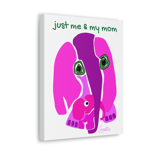 Colorful Mommy & Baby Elephant Design by Lynette Canvas Wrap -11″ x 14″ Nursery Wall Decor or gift for Mom or Baby Gift or Child/Kid Room Wall Art Canvas Top Quality Print